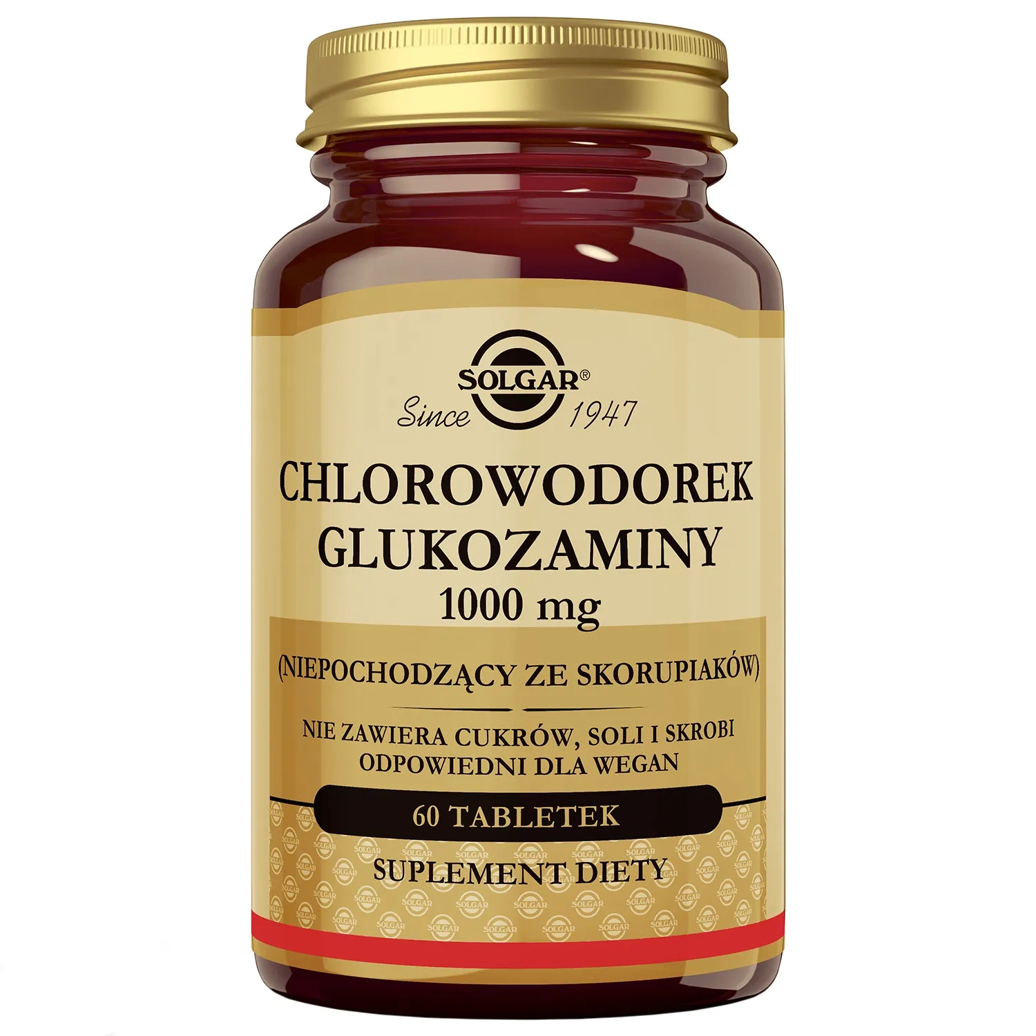 Solgar Chlorowodorek glukozaminy to suplement diety opracowany z myślą o osobach dorosłych, które chcą uzupełnić swoją codzienną dietę w glukozaminę – związek naturalnie występujący w organizmie człowieka, będący elementem budulcowym tkanki chrzęstnej. Produkt powstał w procesie biotechnologicznym z wykorzystaniem surowców roślinnych, dzięki czemu nie zawiera składników pochodzenia zwierzęcego i jest odpowiedni zarówno dla wegetarian, jak i wegan. Każda tabletka dostarcza 1000 mg chlorowodorku glukozaminy, w tym 831 mg czystej glukozaminy.