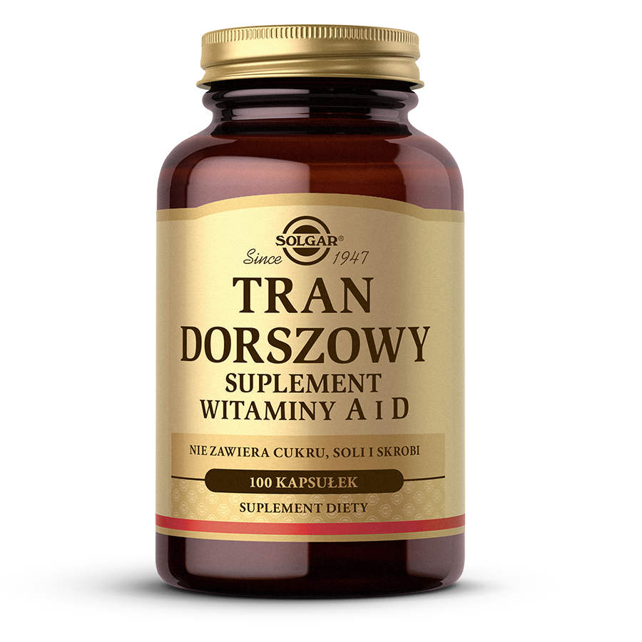 • SOLGAR Tran Dorszowy to suplement diety zawierający tran z tłuszczu dorsza, bogaty w kwasy omega-3 (EPA i DHA), wspierający zdrowie serca, mózgu i wzroku.
