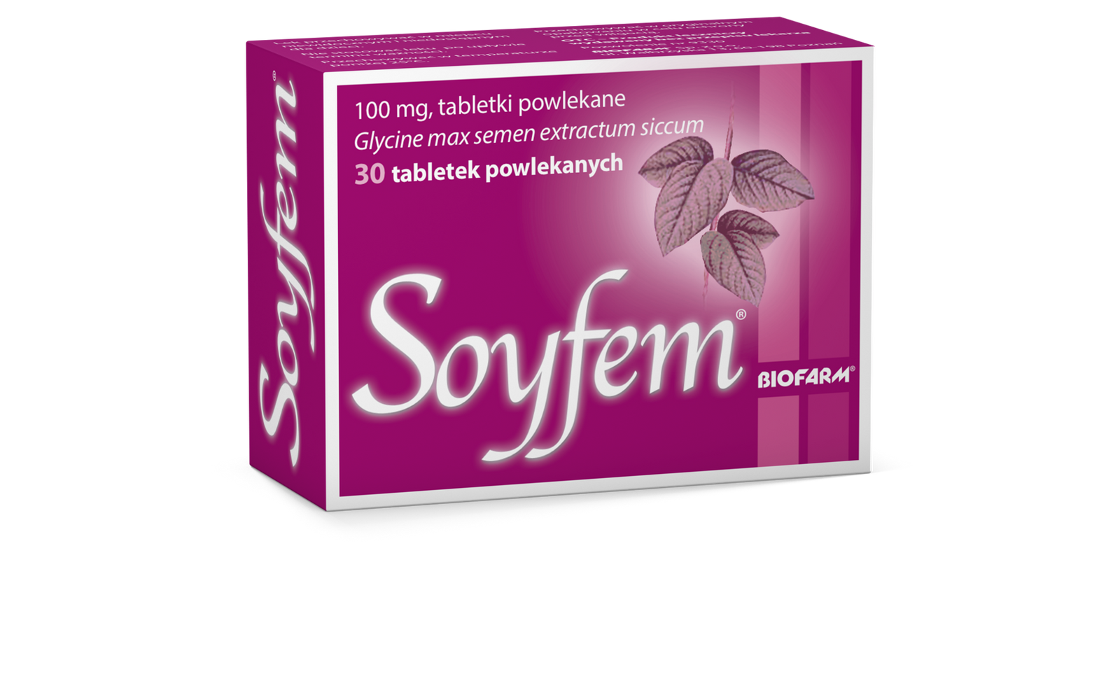 SOYFEM 100 mg to lek roślinny dla kobiet w okresie przekwitania, zawierający standaryzowany wyciąg z nasion soi – bogaty w izoflawony sojowe, m.in. genisteinę i daidzeinę. To właśnie one naśladują w pewnym stopniu działanie estrogenów, co pomaga łagodzić typowe dolegliwości menopauzalne, takie jak uderzenia gorąca, nadmierne pocenie się, zaburzenia snu czy uczucie niepokoju i napięcia nerwowego. Regularne stosowanie leku zgodnie z ulotką może poprawić komfort życia, ułatwić funkcjonowanie w ciągu dnia oraz wspierać spokojniejszy sen u kobiet w okresie okołomenopauzalnym i pomenopauzalnym.
