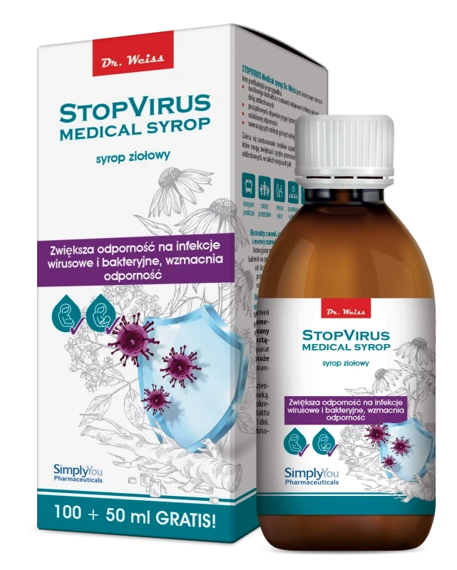 - StopVirus Medical Syrop Dr. Weiss – syrop ziołowy tworzący barierę przeciwwirusową i wspierający odporność. Dla dzieci od 3 lat i dorosłych.