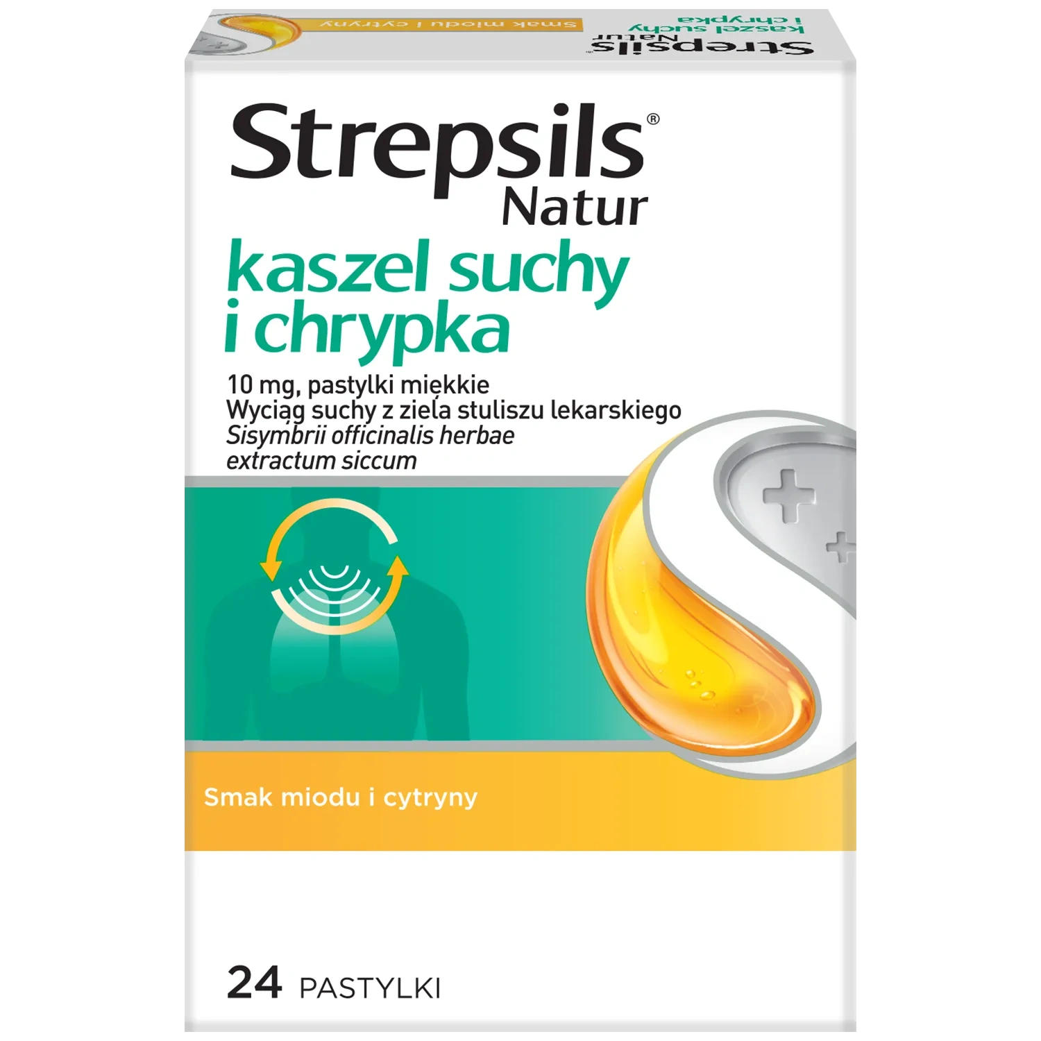 Strepsils Natur kaszel suchy i chrypka to tradycyjny lek roślinny w postaci miękkich pastylek do ssania, zawierający wyciąg suchy z ziela stuliszu lekarskiego (Sisymbrium officinale L.).
