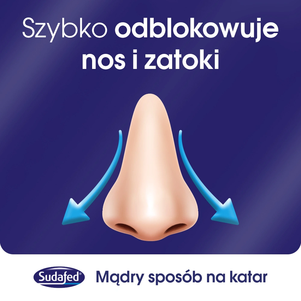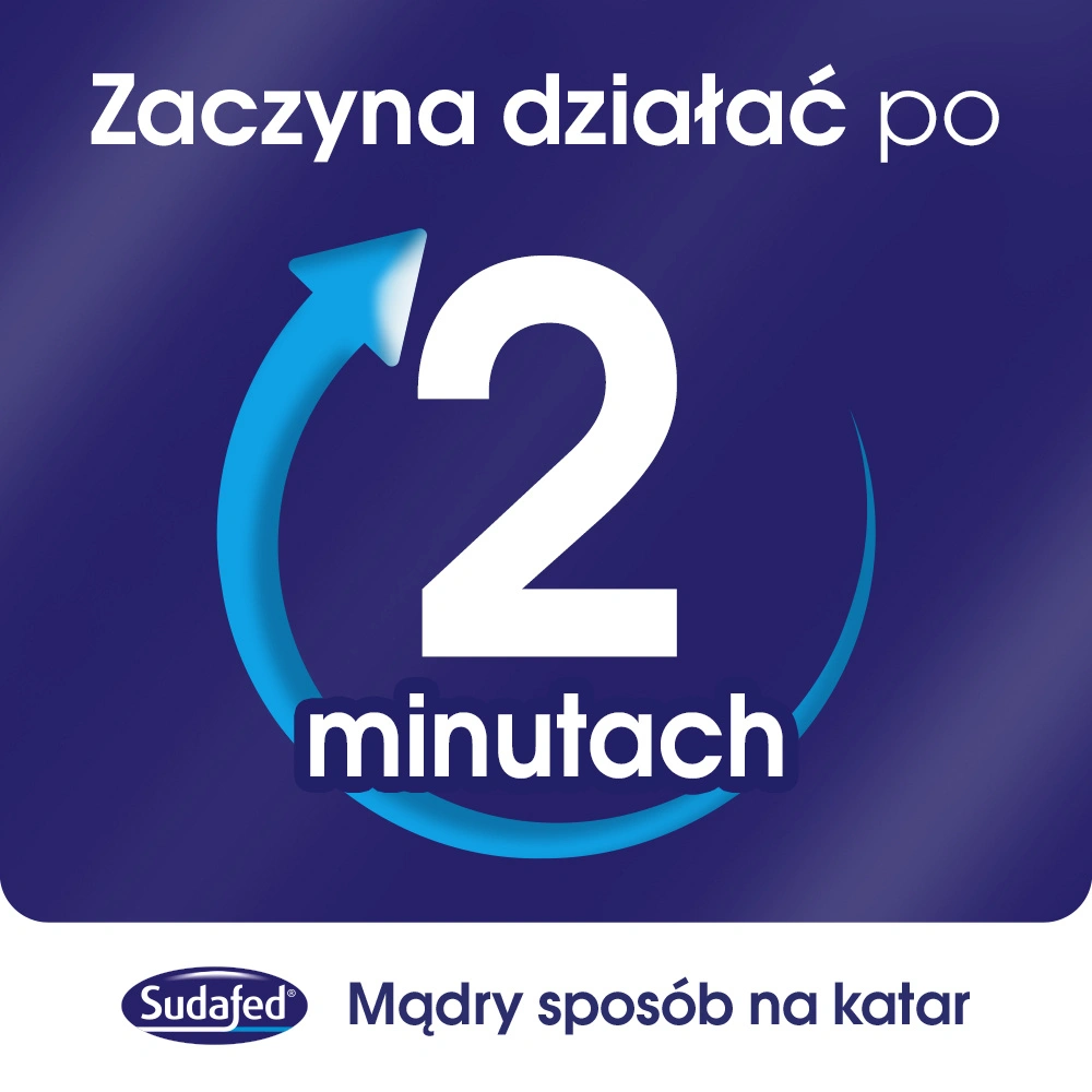 Sudafed XyloSpray zawiera ksylometazolinę, która obkurcza naczynia krwionośne błony śluzowej nosa, redukując obrzęk i katar. Dzięki temu łagodzi uczucie zatkanego nosa i przywraca komfort oddychania w ciągu 5–10 minut od zastosowania.