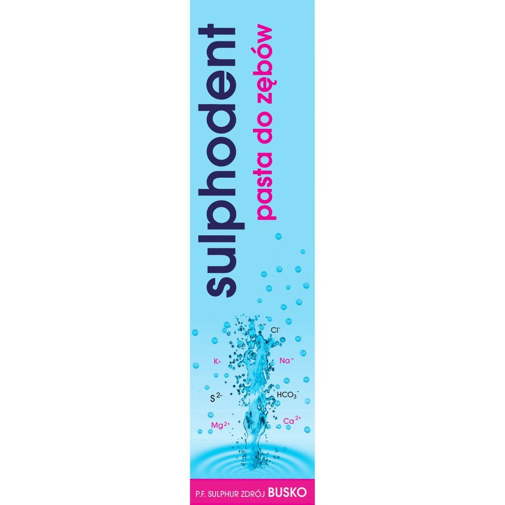 Sulphodent to specjalistyczna pasta lecznicza przeznaczona do codziennej higieny jamy ustnej u osób zmagających się z zapaleniem dziąseł, paradontozą oraz skłonnością do krwawienia dziąseł. Jej receptura opiera się na naturalnych związkach siarki oraz mikroelementach pochodzących z solanki siarczkowej i soli jodowo-bromowej, co czyni ją wyjątkowym wsparciem w leczeniu stanów zapalnych jamy ustnej. Regularne stosowanie pasty Sulphodent pomaga zmniejszyć objawy zapalenia, redukuje krwawienie dziąseł i wspiera utrzymanie zdrowych, mocnych zębów, jednocześnie zapewniając długotrwałe uczucie świeżości.
