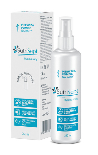 SutriSept® w Solution Płyn na rany to nowej generacji preparat do antyseptycznego oczyszczania, przemywania ran i oparzeń 1. i 2. stopnia. SutriSept® bezboleśnie oczyszcza rany i oparzenia, zapobiega zakażeniu rany i przyspiesza jej gojenie. Przeznaczony jest do oczyszczania oraz nawilżania ran zakażonych i niezakażonych. Zawiera jedyne na rynku połączenie 0,1% PHMB (Poliheksanid) i Poloksameru 188, niejonowego surfaktantu wspierającego leczenie ran.
