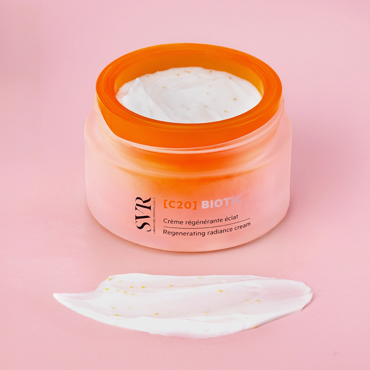 SVR [C20] Biotic to zaawansowany krem przeznaczony do pielęgnacji skóry pozbawionej blasku, z oznakami zmęczenia oraz pierwszymi zmarszczkami. Jego formuła łączy w sobie wysokie stężenie witaminy C z innymi składnikami aktywnymi, które wspierają regenerację i nawilżenie skóry.​