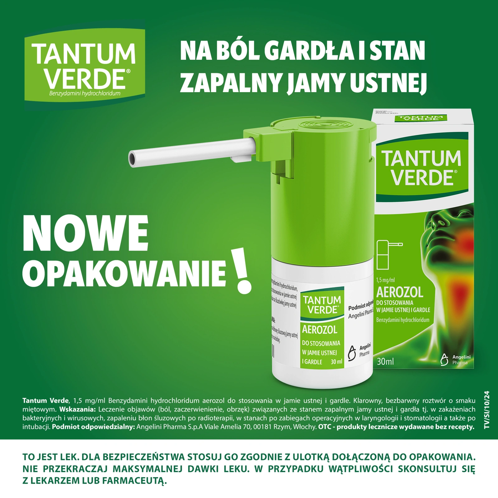 - TANTUM VERDE 1,5 mg/ml to lek w formie aerozolu, przeznaczony do stosowania w przypadku bólu gardła i stanów zapalnych jamy ustnej.