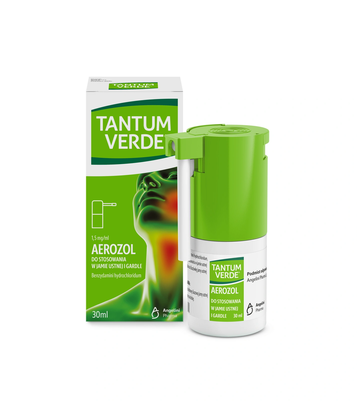 TANTUM VERDE 1,5 mg/ml, lek na ból gardła i stany zapalne jamy ustnej, aerozol 30 ml