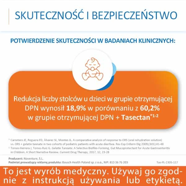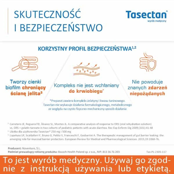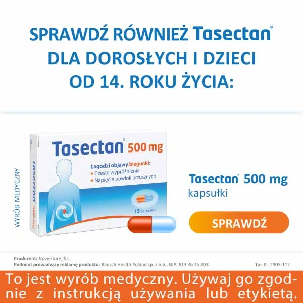 Tasectan 250 mg towyrób medyczny przeciwbiegunkowy, który można stosować u dzieci w celu łagodzenia objawów biegunki różnego pochodzenia.