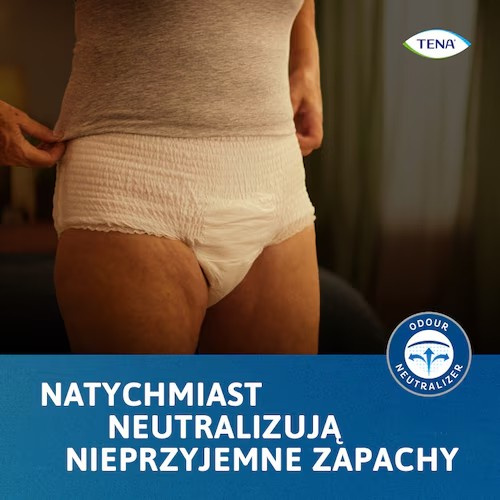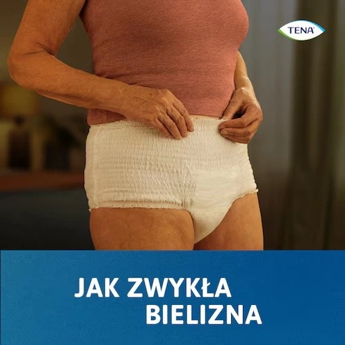 Tena Pants ProSkin Night L to zaawansowane majtki chłonne stworzone specjalnie z myślą o osobach z średnim i ciężkim nietrzymaniem moczu, które potrzebują niezawodnej ochrony w pozycji leżącej. Dzięki innowacyjnemu systemowi Lie Down Protection oraz dodatkowej chłonności w tylnej części wkładu produkt zapewnia pewność, suchość i spokojny sen przez całą noc. Majtki chłonne zakładane są jak zwykła bielizna, doskonale przylegają do ciała i pozostają na miejscu nawet podczas przewracania się w łóżku, oferując wygodę zarówno kobietom, jak i mężczyznom.