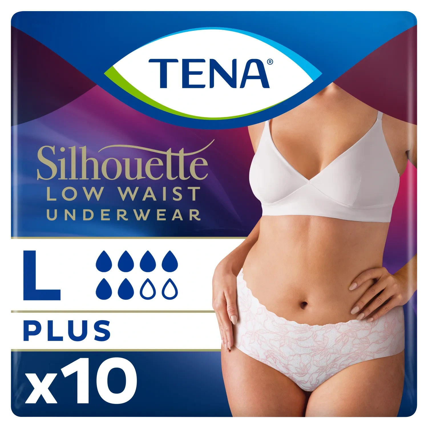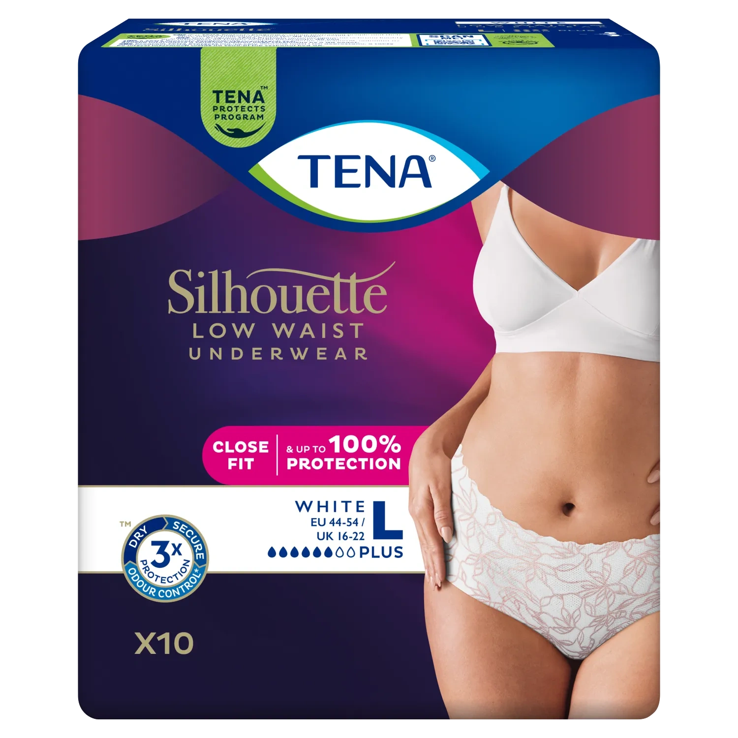 Tena Silhouette Plus White Romiar L (95-125cm) Majtki chłonne, 10 sztuk