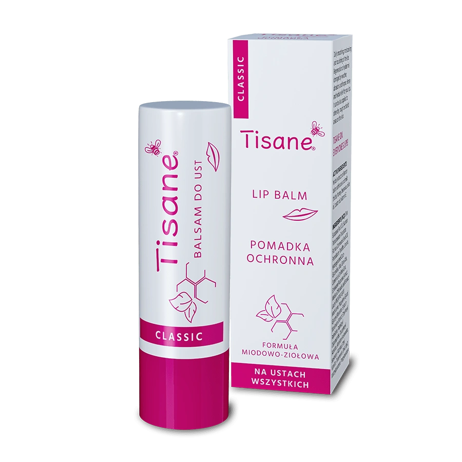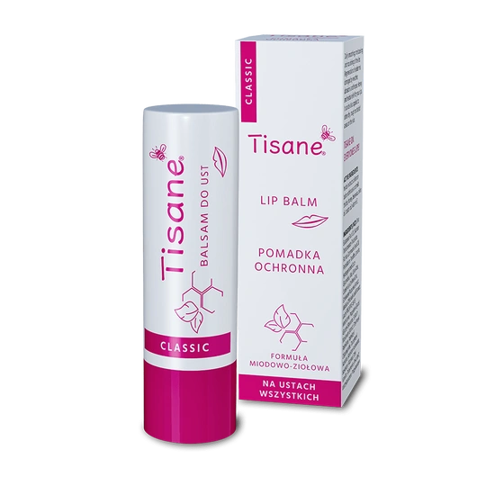 Tisane Classic pomadka to ziołowo-miodowy balsam do ust w wygodnej formie sztyftu. Dzięki naturalnym składnikom takim jak miód, wosk pszczeli, oleje roślinne i ekstrakty ziołowe (melisa, jeżówka, ostropest), skutecznie regeneruje, odżywia i chroni delikatny naskórek warg. Idealny dla osób z tendencją do pierzchnięcia i pękania ust.