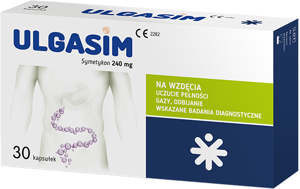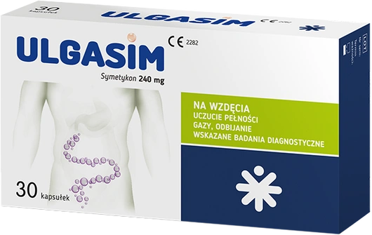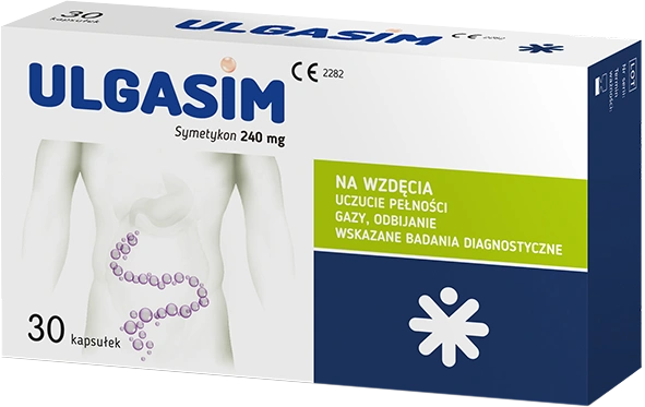 Ulgasim to wyrób medyczny w formie kapsułek miękkich, zawierający 240 mg symetykonu – substancji zmniejszającej napięcie powierzchniowe pęcherzyków gazów w przewodzie pokarmowym. Dzięki temu ułatwia ich pękanie i naturalne wydalanie. Preparat przeznaczony jest dla osób dorosłych i młodzieży powyżej 12 roku życia, które zmagają się z uczuciem pełności, wzdęciami czy odbijaniem. Może być także stosowany pomocniczo przed badaniami diagnostycznymi jamy brzusznej (USG, endoskopia, RTG), aby poprawić jakość obrazowania.