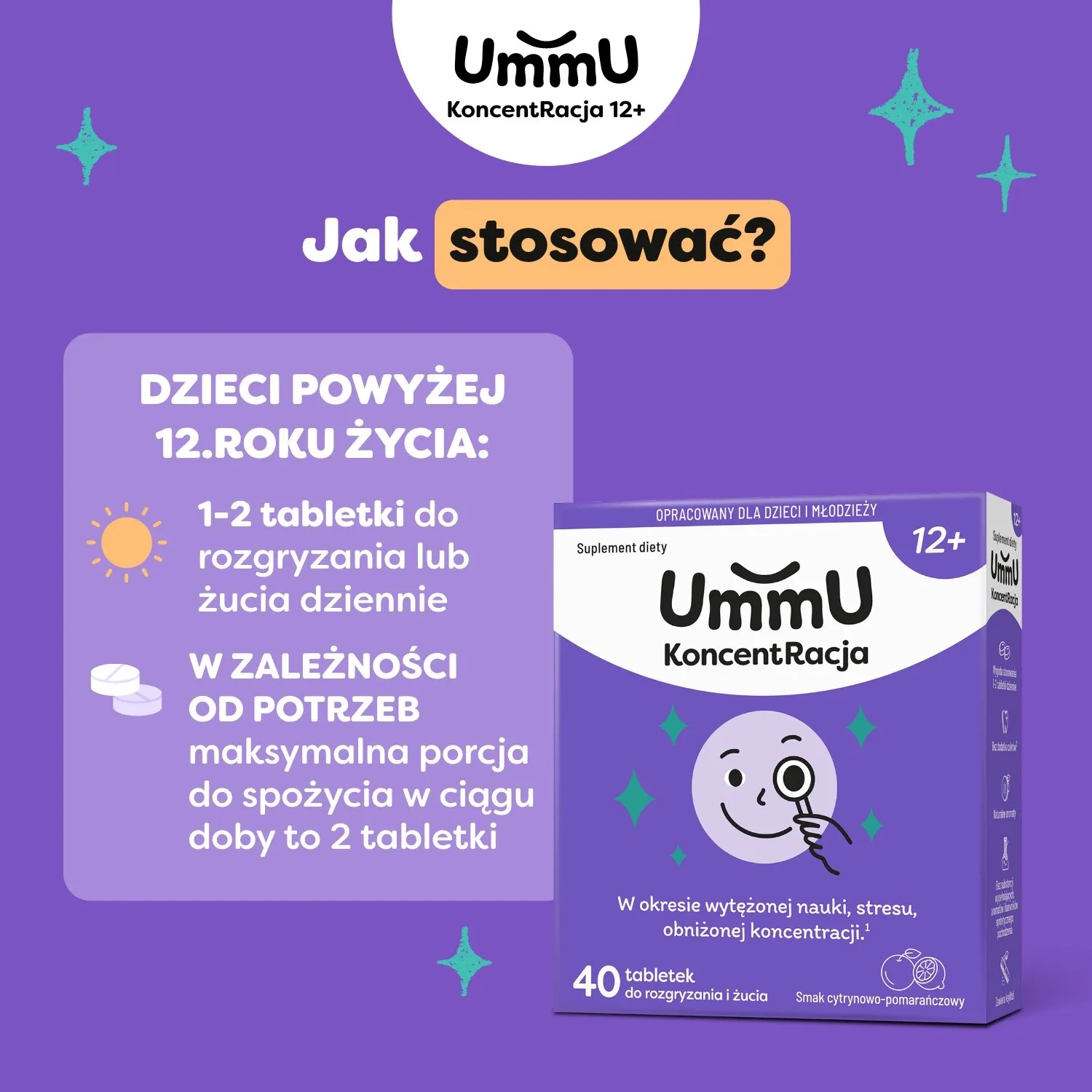 UmmU KoncentRacja 12+, 40 tabletek do żucia