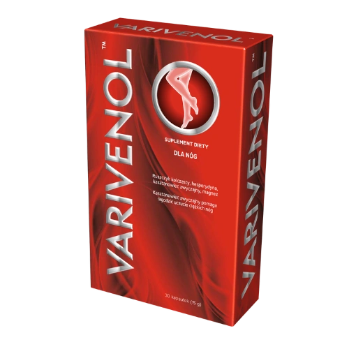 Varivenol to suplement diety opracowany z myślą o osobach pragnących wspierać prawidłowe funkcjonowanie naczyń krwionośnych i komfort nóg w ciągu dnia. Zawiera starannie dobrane składniki roślinne – ekstrakt z ruszczyka kolczastego, nasion kasztanowca zwyczajnego oraz hesperydynę – uzupełnione o magnez. Dzięki temu wspiera utrzymanie właściwego krążenia żylnego w nogach, pomaga zmniejszać uczucie ciężkości i obrzęków, a także wspomaga prawidłową pracę mięśni. Produkt przeznaczony jest dla osób dorosłych, które chcą zadbać o komfort nóg, zwłaszcza w sytuacjach wymagających długotrwałego stania lub siedzenia.
