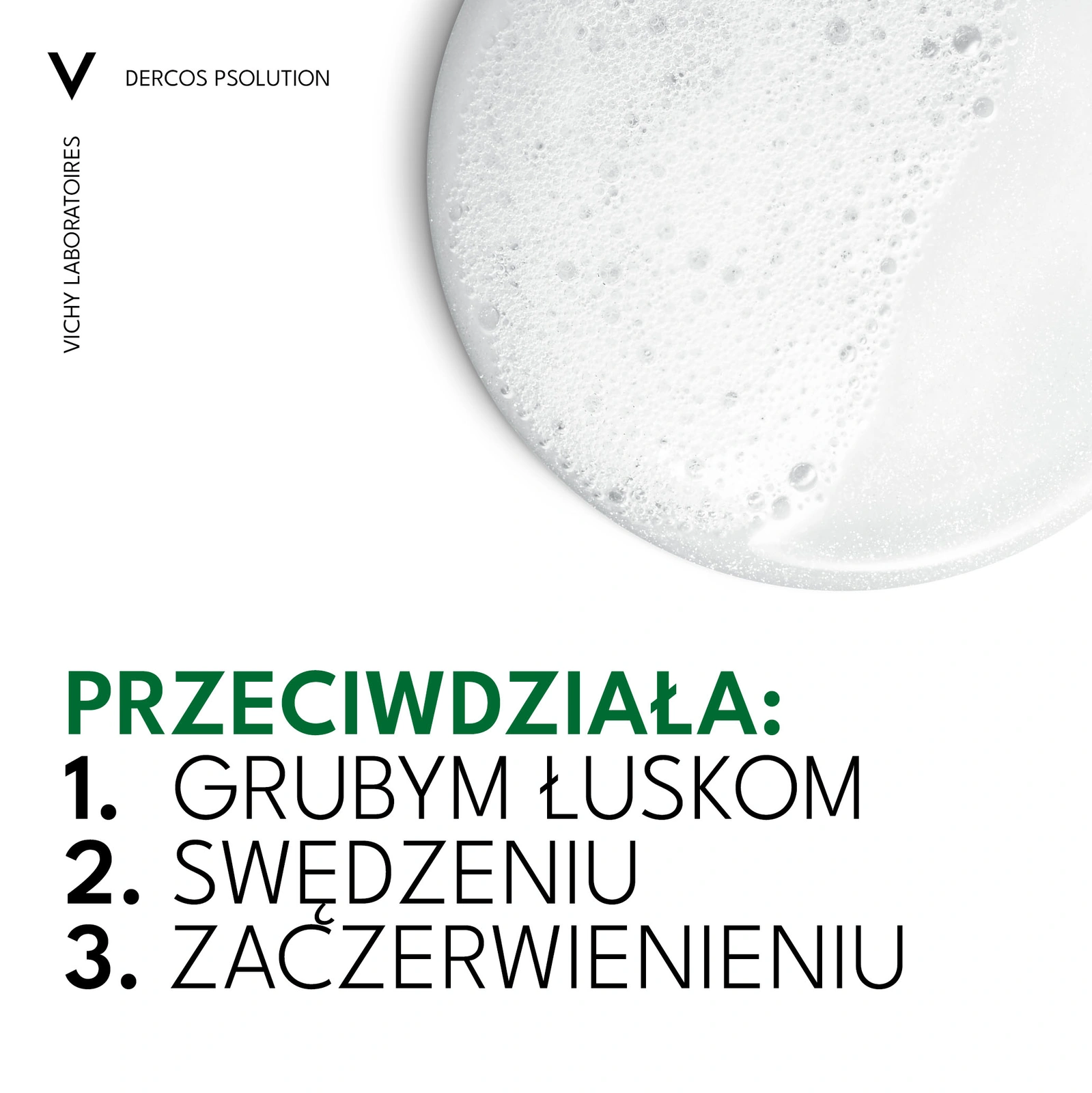 Formuła Dercos PSOlution wzbogacona o 5% mocznik i 2% kwas salicylowy skutecznie łagodzi swędzenie i podrażnienia, zmniejsza dyskomfort skóry głowy oraz daje odczucie mniejszej wrażliwości skóry. Dodatkowo skóra głowy i włosy są mniej tłuste w odczuciu, a widoczność łusek zredukowana.