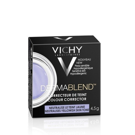 Korektor VICHY Dermablend w odcieniu fioletowym skutecznie maskuje umiarkowane i poważne przebarwienia. Neutralizuje żółty kolor skóry, niwelując efekt zmęczonej cery. Rozjaśnia ją i dodaje blasku, przywracając zdrowy wygląd na cały dzień.
