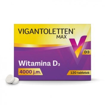 • Vigantoletten MAX Witamina D3 4000 j.m. to suplement diety w tabletkach, zawierający witaminę D3. Produkt przeznaczony dla osób dorosłych, szczególnie w przypadku niedoborów witaminy D.