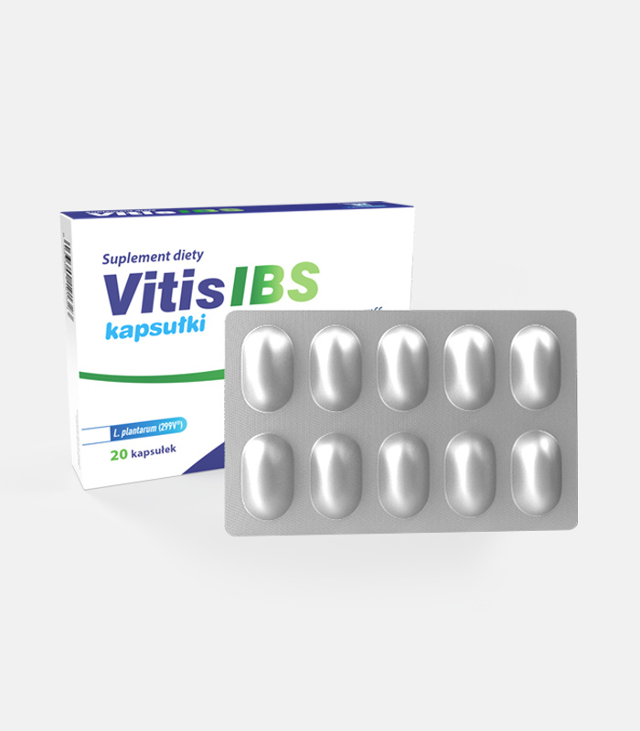 Vitis IBS kapsułki to suplement diety opracowany z myślą o osobach, które chcą wspierać naturalną równowagę mikroflory jelitowej. Produkt zawiera dwa precyzyjnie dobrane, dobrze przebadane szczepy bakterii probiotycznych: Lactobacillus rhamnosus GG oraz Lactobacillus plantarum (299V®). Każda kapsułka dostarcza aż 20 miliardów żywych komórek probiotycznych (10 miliardów każdego szczepu), wspomagających prawidłowe funkcjonowanie układu pokarmowego.