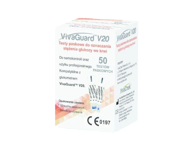 Vivaguard V20 Paski testowe do pomiaru glukozy, 50 sztuk