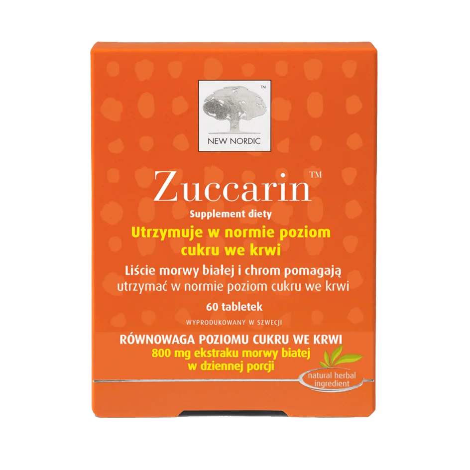 Zuccarin to skandynawski suplement diety rekomendowany osobom chcącym zadbać o prawidłowy metabolizm węglowodanów oraz utrzymanie właściwego poziomu cukru we krwi. Produkt zawiera standaryzowany wyciąg z liści morwy białej, tradycyjnie stosowanej w Azji jako element diety, oraz chrom, który pomaga w utrzymaniu prawidłowego poziomu glukozy we krwi i wspiera metabolizm makroskładników odżywczych. Preparat zdobył tytuł Produkt Roku 2020 w kategorii „Preparaty obniżające poziom cukru” według magazynu Świat Farmacji.