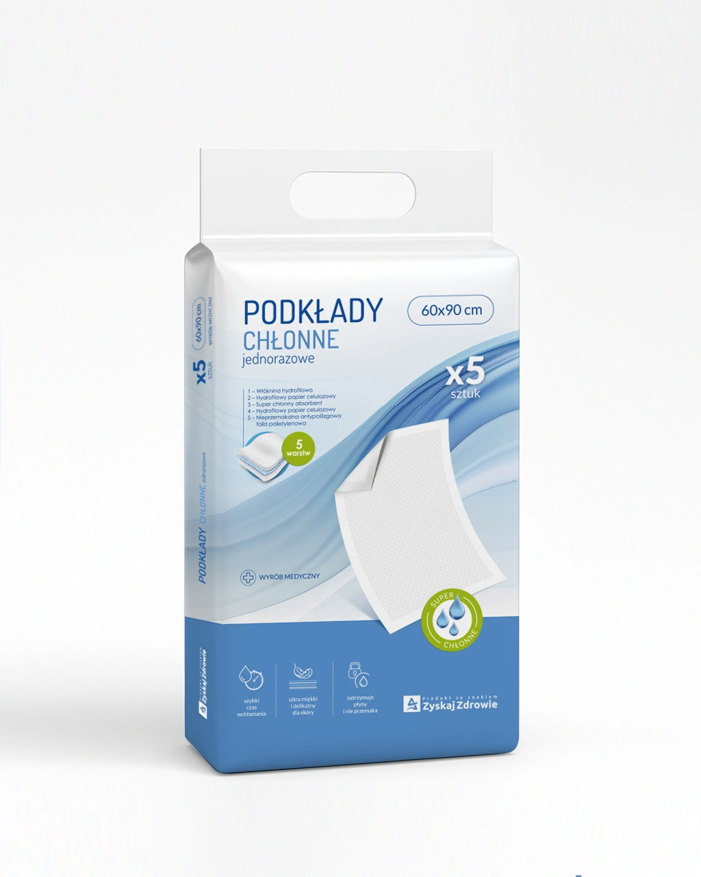 Podkłady chłonne jednorazowe Zyskaj Zdrowie to praktyczne i niezawodne rozwiązanie zapewniające ochronę przed wilgocią w opiece nad osobami starszymi, pacjentami unieruchomionymi, przewlekle chorymi, a także dziećmi i kobietami w okresie połogu. Dzięki trójwarstwowej budowie skutecznie odprowadzają i zatrzymują płyny, dbając o higieniczne warunki skóry i komfort użytkownika. To wyrób medyczny, który sprawdza się zarówno w warunkach domowych, jak i profesjonalnej opieki.